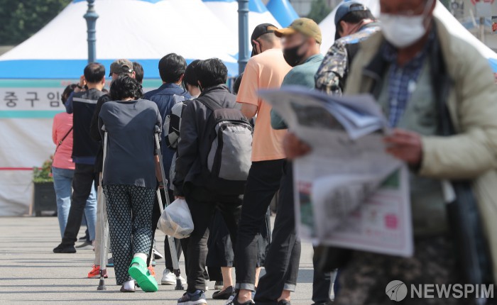 [서울=뉴스핌] 김학선 기자 = 신종 코로나바이러스 감염증(코로나19) 신규 확진자 수가 이틀째 500명대를 기록한 29일 오전 서울 중구 서울역 광장에 마련된 코로나19 임시 선별검사소에서 시민들이 검사를 받기 위해 대기하고 있다. 중앙방역대책본부는 이날 0시 기준으로 국내 신규 확진자가 533명 늘어 누적 13만9천431명이라고 밝혔다. 2021.05.29 yooksa@newspim.com