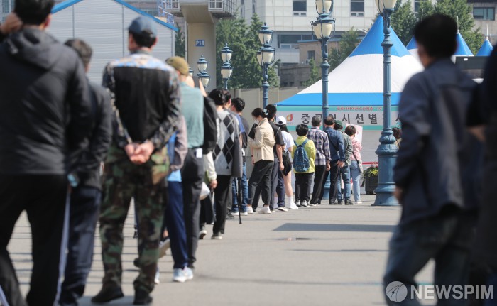 [서울=뉴스핌] 김학선 기자 = 신종 코로나바이러스 감염증(코로나19) 신규 확진자 수가 이틀째 500명대를 기록한 29일 오전 서울 중구 서울역 광장에 마련된 코로나19 임시 선별검사소에서 시민들이 검사를 받기 위해 대기하고 있다. 중앙방역대책본부는 이날 0시 기준으로 국내 신규 확진자가 533명 늘어 누적 13만9천431명이라고 밝혔다. 2021.05.29 yooksa@newspim.com