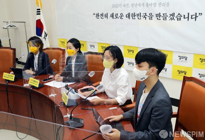 [서울=뉴스핌] 윤창빈 기자 = 장혜영 정의당 의원이 30일 오전 서울 여의도 국회에서 열린 '청년에게 출마할 권리를' 대선 피선거권 보장 기자회견에서 발언하고 있다. 2021.05.30 pangbin@newspim.com