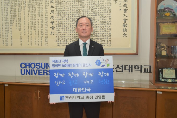 [광주=뉴스핌] 전경훈 기자 = 조선대학교는 민영돈 총장이 '저출산 극복 함께해요! 범국민 포(4)함 릴레이 챌린지'에 동참했다고 31일 밝혔다.