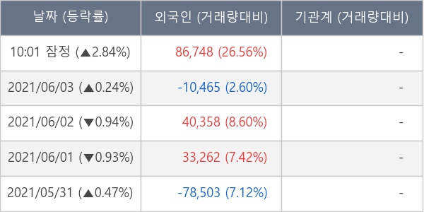 [표] 외국인ㆍ기관 순매매량 (단위 주)