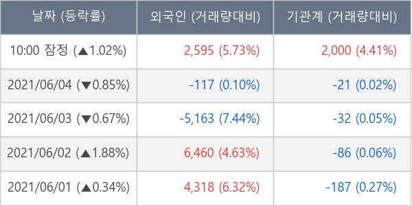 [표] 외국인ㆍ기관 순매매량 (단위 주)