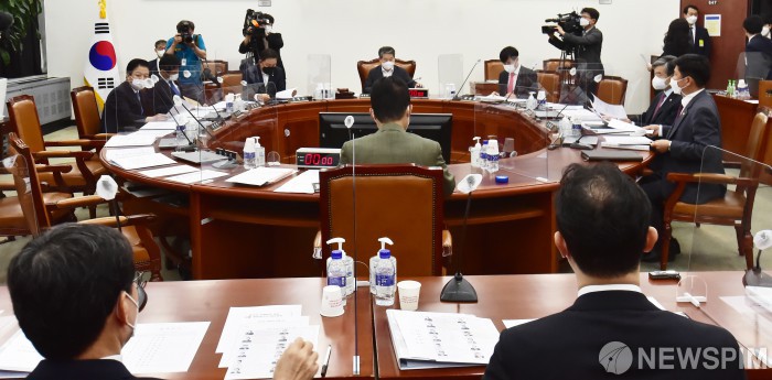 [서울=뉴스핌] 최상수 기자 = 김경협 정보위원장이 9일 서울 여의도 국회에서 열린 국정원 불법사찰 자체 감찰 결과 보고 정보위원회 전체회의를 주재하기 위해 자리하고 있다. 2021.06.09 kilroy023@newspim.com