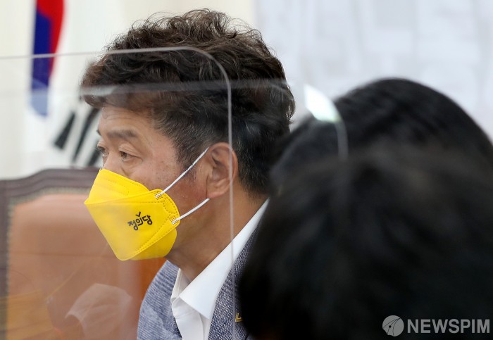 [서울=뉴스핌] 최상수 기자 = 여영국 정의당 대표가 14일 오전 서울 여의도 국회에서 열린 20대 대선 준비단 전체회의에서 모두발언을 하고 있다. 2021.06.14 kilroy023@newspim.com