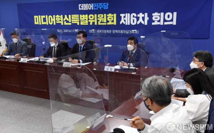 [서울=뉴스핌] 최상수 기자 = 송영길 더불어민주당 대표가 17일 서울 여의도 국회 의원회관에서 열린 미디어혁신특별위원회 제6차회의에서 발언하고 있다. 2021.06.17 kilroy023@newspim.com