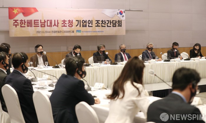 [서울=뉴스핌] 정일구 기자 = 응웬 부 뚱(Nguyen Vu Tung) 주한베트남대사가 23일 오전 서울 여의도 전경련회관 컨퍼런스센터에서 열린 주한베트남대사 초청 기업인 조찬간담회에서 기조연설을 하고 있다. 2021.06.23 mironj19@newspim.com