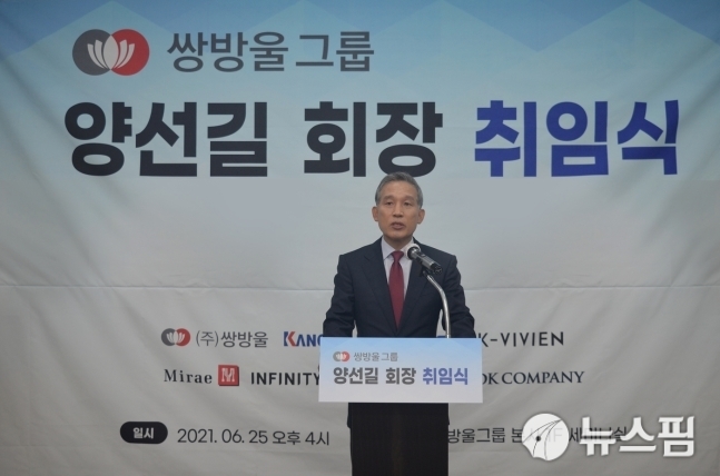 쌍방울그룹은 지난 25일 서빙고 본사 1층 강당에서 열린 취임식에서는 양 대표를 신임 회장으로 선임했다고 28일 밝혔다. 취임식은 코로나 19 바이러스 사태를 감안해 간소하게 치러졌다.