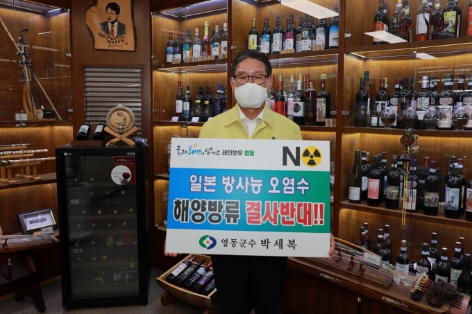 [영동=뉴스핌] 백운학 기자 = 박세복 충북 영동군수가 7일 해양방류 결정 규탄 및 철회 촉구 릴레이 챌린지에 동참했다.