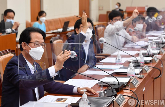 [서울=뉴스핌] 이형석 기자 = 국민의힘 의원들이 16일 서울 여의도 국회에서 열린 기획재정위원회 전체회의에서 세무사법 개정안 의결에 대한 의사진행발언을 신청하고 있다. 2021.07.16 leehs@newspim.com