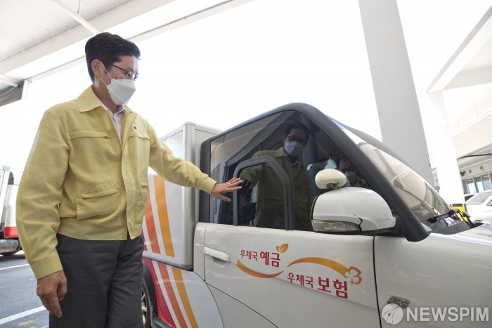 [서울=뉴스핌] 조경식 과학기술정보통신부 제2차관이 22일 오후 세종특별자치시 세종우체국을 방문해 방역현장을 점검하고 있다.[사진=과학기술정보통신부] 2021.07.22 photo@newspim.com