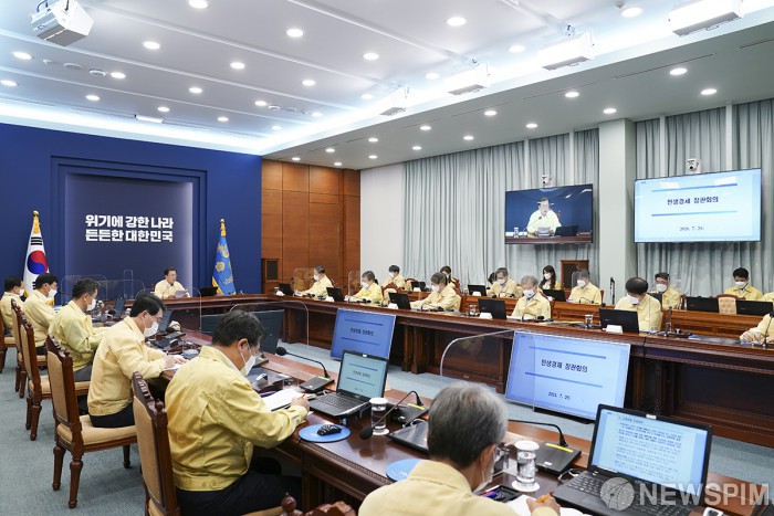 [서울=뉴스핌] 문재인 대통령이 29일 오후 청와대에서 열린 민생경제장관회의를 주재하고 있다.[사진=청와대] 2021.07.29 photo@newspim.com