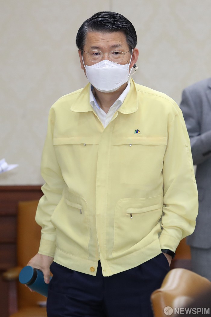 [서울=뉴스핌] 김학선 기자 = 은성수 금융위원장이 5일 서울 종로구 정부서울청사에서 열린 제42차 비상경제 중앙대책본부 회의에 참석하고 있다. 2021.08.05 yooksa@newspim.com
