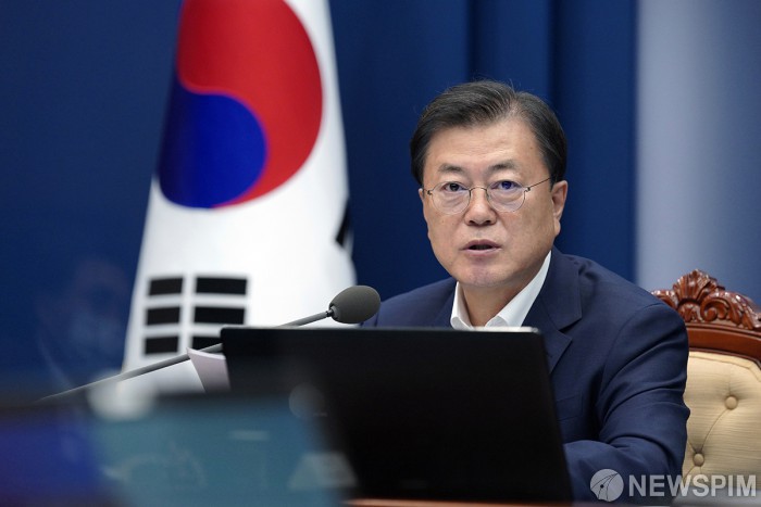 [서울=뉴스핌] 문재인 대통령이 5일 오후 청와대에서 열린 K-글로벌 백신 허브화 비전 및 전략 보고대회에서 발언하고 있다.[사진=청와대] 2021.08.05 photo@newspim.com