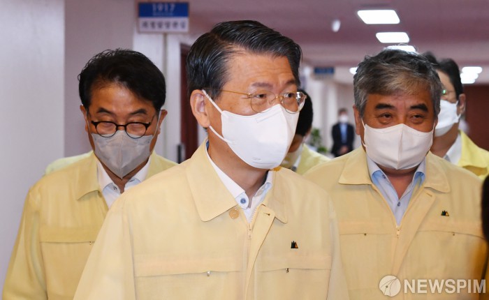 [서울=뉴스핌] 김학선 기자 = 은성수 금융위원장이 10일 오전 서울 종로구 정부서울청사에서 열린 국무회의에 참석하고 있다. 2021.08.10 yooksa@newspim.com