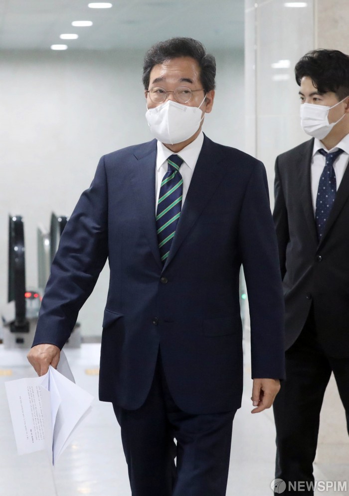 [서울=뉴스핌] 이형석 기자 = 이낙연 더불어민주당 경선 후보가 7일 오전 서울 여의도 국회 소통관에서 경제부흥 비전발표 기자회견을 하기위해 들어서고 있다. 2021.09.07 leehs@newspim.com