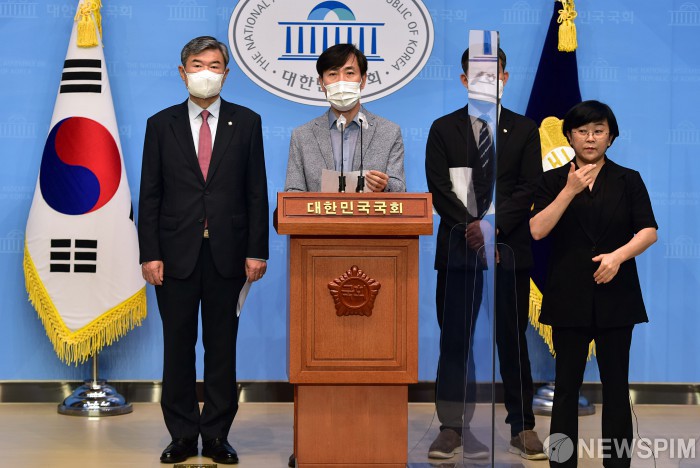 [서울=뉴스핌] 이형석 기자 = 하태경 국민의힘 의원 등 정보위원들이 13일 국회 소통관에서 '윤석열 고발사주 의혹'에 대해 박지원 국정원장의 정칙개입 사건이라고 주장하며 박 원장 사퇴와 정보위 소집 등을 요구하는 기자회견을 하고 있다. 2021.09.13 leehs@newspim.com