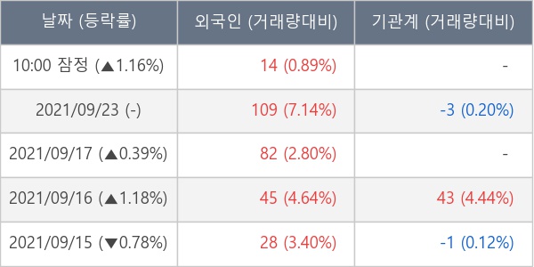 [표] 외국인ㆍ기관 순매매량 (단위 주)