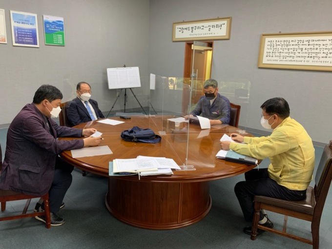 | 오규석 기장군수(오른쪽 두 번째)가 365야간군수실에서 민원을 상담하고 있다.[사진=기장군] 2021.09.29 ndh4000@newspim.com |