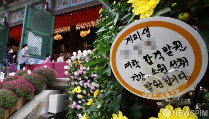 [서울=뉴스핌] 정일구 기자 = 2022학년도 대학수학능력시험을 50일 앞둔 29일 오후 서울 종로구 조계사에 수능 응원 글귀가 적힌 소원지가 꽂혀 있다. 2021.09.29 mironj19@newspim.com