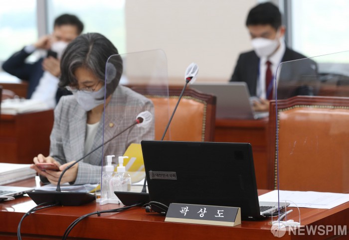[서울=뉴스핌] 이형석 기자 = 5일 오전 서울 여의도 국회에서 교육위원회의 국가평생교육진흥원, 한국학중앙연구원 등에 대한 국정감사가 열린 가운데 의원직 사퇴를 선언한 곽상도 무소속 의원의 자리가 비어있다. 2021.10.05 leehs@newspim.com