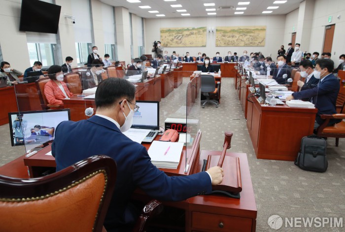 [서울=뉴스핌] 이형석 기자 = 조해진 교육위원장이 5일 오전 서울 여의도 국회에서 열린 교육위원회의 국가평생교육진흥원, 한국학중앙연구원 등에 대한 국정감사를 개의하고 있다. 2021.10.05 leehs@newspim.com