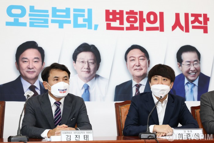 [서울=뉴스핌] 최상수 기자 = 국민의힘 이준석 대표가 3일 국회에서 열린 국민의힘 '이재명 비리 국민검증특별위원회' 임명장 수여식 및 회의에서 모두 발언을 하고 있다. 2021.11.03 kilroy023@newspim.com