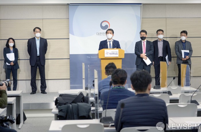 [서울=뉴스핌] 주영준 산업통상자원부 산업정책실장이 11일 오전 정부세종청사 제4공용브리핑실에서 환경부 기후탄소정책실과 함께 '요소·요소수 긴급수급조정조치 고시 제정 및 시행 관련 합동브리핑'을 하고 있다. [사진=산업통상자원부] 2021.11.11 photo@newspim.com