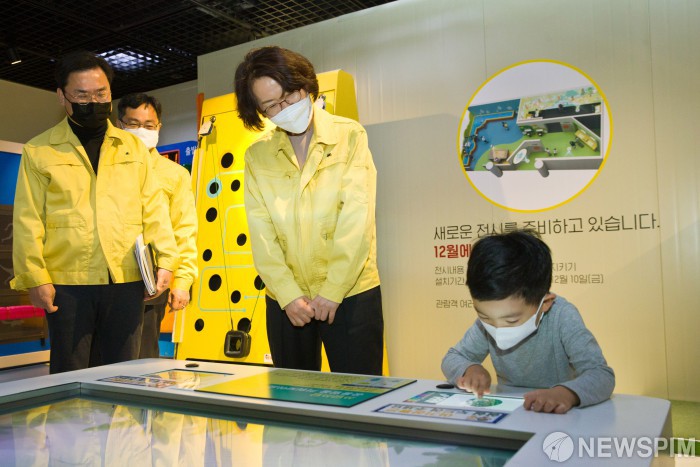 [서울=뉴스핌]임혜숙 과학기술정보통신부 장관이 7일 오후 서울 종로구 국립어린이과학관을 방문해어린이 관람객을 바라보고 있다.[사진= 과학기술정보통신부 ] 2021.12.07 photo@newspim.com