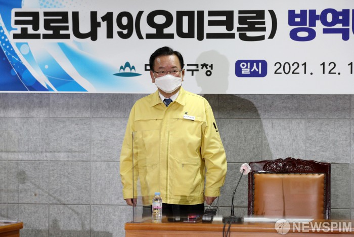 [인천=뉴스핌] 윤창빈 기자 = 김부겸 국무총리가 10일 인천 미추홀구청을 찾아 코로나19(오미크론) 방역대책 보고 및 현장점검회의에 참석하고 있다. 2021.12.10 pangbin@newspim.com