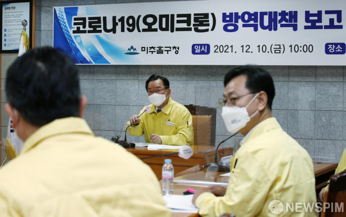 [인천=뉴스핌] 윤창빈 기자 = 김부겸 국무총리가 10일 인천 미추홀구청을 찾아 코로나19(오미크론) 방역대책 보고 및 현장점검회의에서 모두발언을 하고 있다. 2021.12.10 pangbin@newspim.com