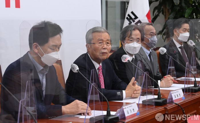 [서울=뉴스핌] 이형석 기자 = 김종인 국민의힘 총괄선거대책위원장이 10일 오전 서울 여의도 국회에서 열린 국민의힘 선대위 직속 코로나위기대응위원회 제1차회의에서 모두발언을 하고 있다. 2021.12.10 leehs@newspim.com