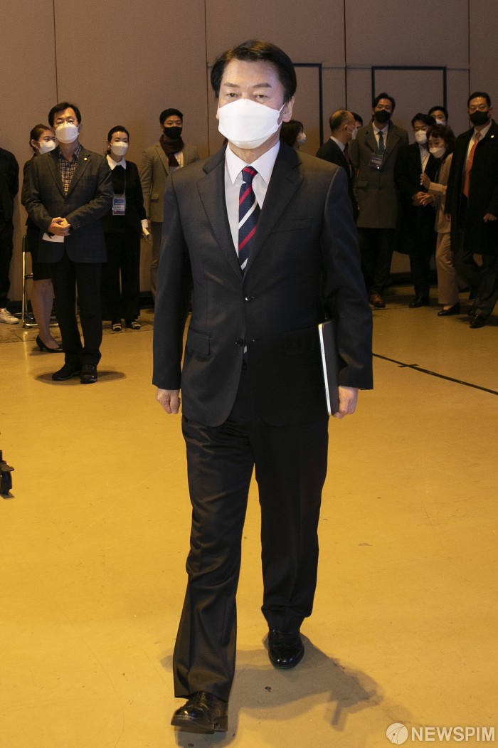 [서울=뉴스핌] 국회사진취재단 = 안철수 국민의당 대선후보가 10일 오후 서울 강남 코엑스 전시장 D홀에서 열린 ‘<우리의 희망! 복지강국!>사회복지 비전선포대회’에 참석하고 있다. 2021.12.10 photo@newspim.com