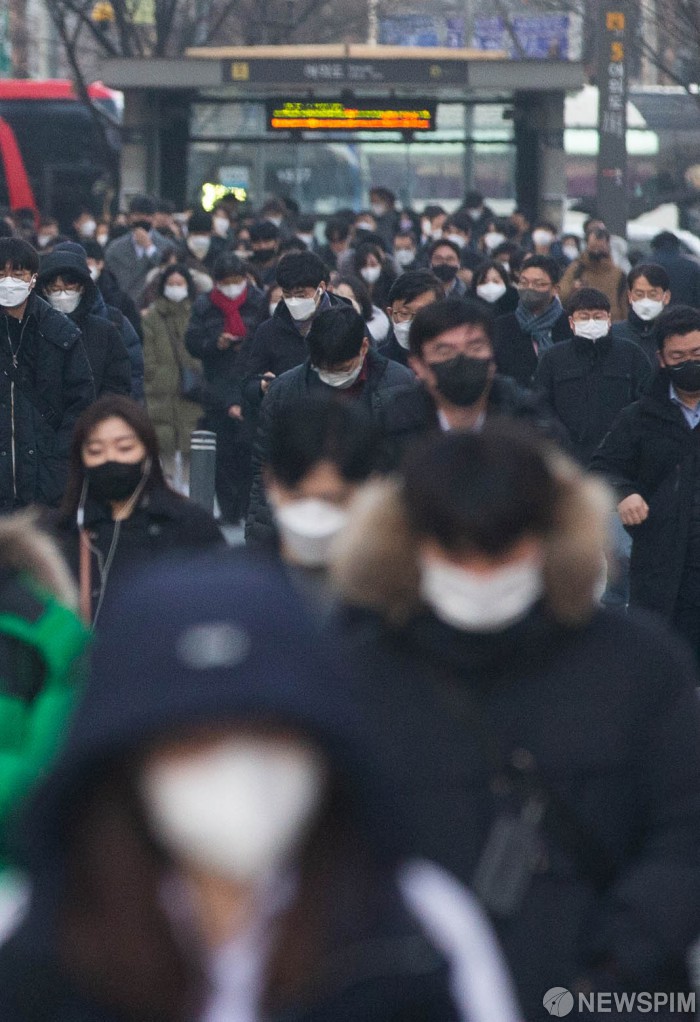 [서울=뉴스핌] 윤창빈 기자 =2022년 임인년 새해 첫 출근이 시작된 3일 오전 서울 여의도역의 시민들이 출근길을 서두르고 있다. 2021.01.03 pangbin@newspim.com