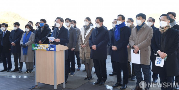 [서울=뉴스핌] 국회사진취재단 = 더불어민주당 이재명 대선후보가 21일 오후 서울 은평구 은평한옥마을 찾아 서울을 글로벌 경제·문화 수도로 육성하기 위한 서울 지역 공약을 발표하고 있다. 2022.01.21 photo@newspim.com