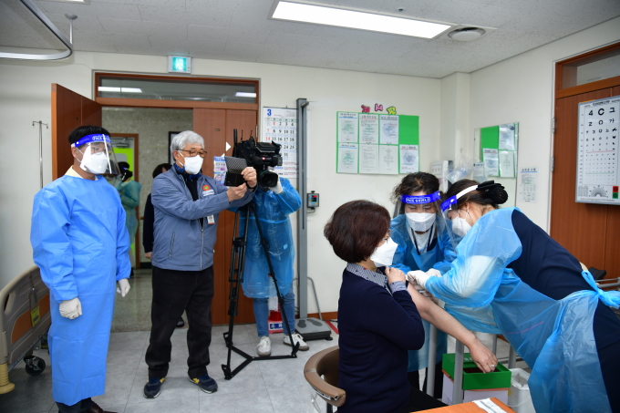 | 변광용 거제시장(맨 왼쪽)이 2021년 2월 26일 오전 백신접종과 관련해 굿뉴스요양병원을 방문해 현황을 살펴보고 있다.[사진=거제시] 2021.02.26 news2349@newspim.com |