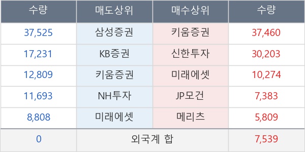 [표] 외국인ㆍ기관 순매매량 (단위 주)