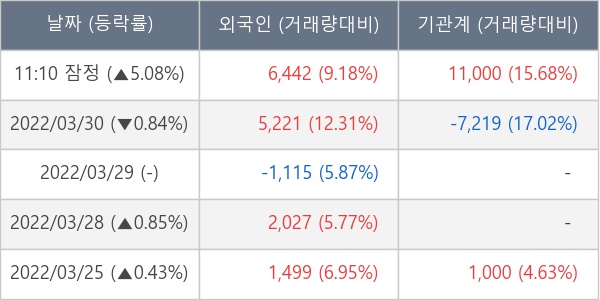 [표] 외국인ㆍ기관 순매매량 (단위 주)