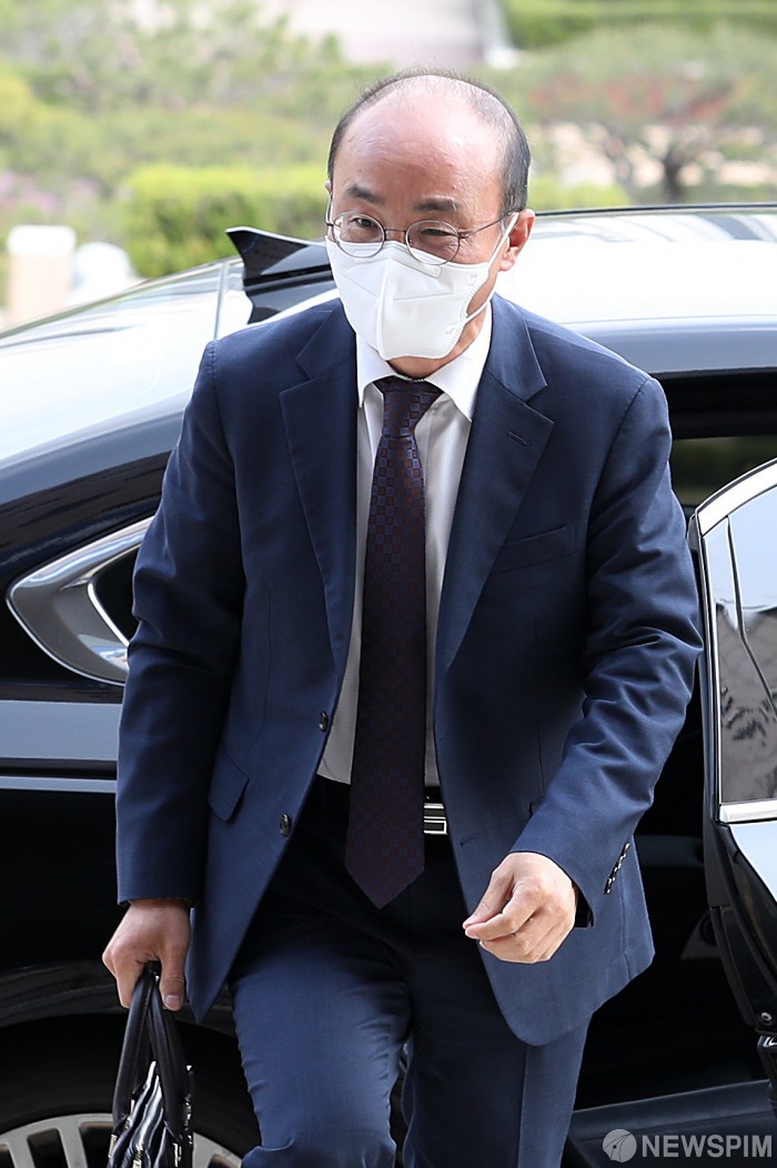 [과천=뉴스핌] 정일구 기자 = 조종태 광주고검장이 21일 오후 '검수완박' 논의를 위한 박범계 법무부 장관 주재 전국 고검장 회의 참석을 위해 경기 과천시 법무부 청사로 들어서고 있다. 2022.04.21 mironj19@newspim.com