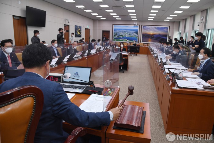 [서울=뉴스핌] 이형석 기자 = 이헌승 국토교통위원장이 25일 서울 여의도 국회에서 열린 국토교통위원회 전체회의를 주재하고 있다. 이날 회의는 국토교통부 원희룡 장관 후보자의 인사청문회 실시계획서 채택의 건 등을 다뤘다. 2022.04.25 leehs@newspim.com