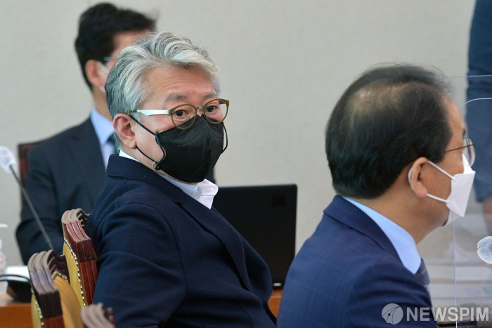 [서울=뉴스핌] 최상수 기자 = 조응천 더불어민주당 의원이 2일 오전 서울 여의도 국회 국토교통위원회에서 열린 원희룡 국토부 장관 후보자 인사청문회에서 후보자의 청문회 준비 태도를 지적한 후 후보자를 바라보고 있다. 2022.05.02 kilroy023@newspim.com