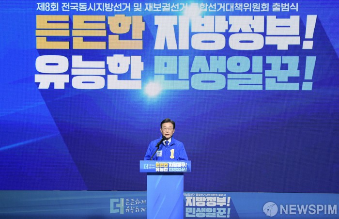 [서울=뉴스핌] 김민지 기자 = 이재명 더불어민주당 총괄선대위원장이 11일 오전 국회 의원회관에서 열린 전국지방선거·재보궐선거 통합선거대책위원회 출범식 및 공천장 수여식에서 인사말을 하고 있다. 2022.05.11 kimkim@newspim.com