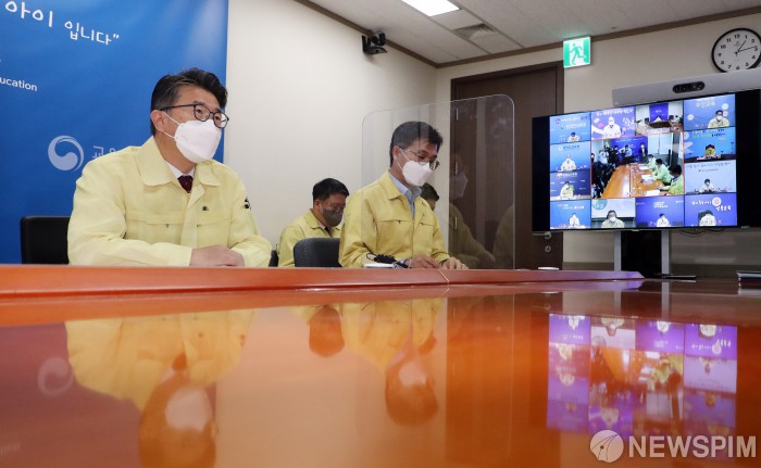[서울=뉴스핌] 김학선 기자 = 장상윤 교육부 차관(장관 권한대행)이 12일 서울 종로구 정부서울청사에서 열린 코로나19 대응 학교일상회복지원단 회의를 주재하며 발언하고 있다. 2022.05.12 yooksa@newspim.com