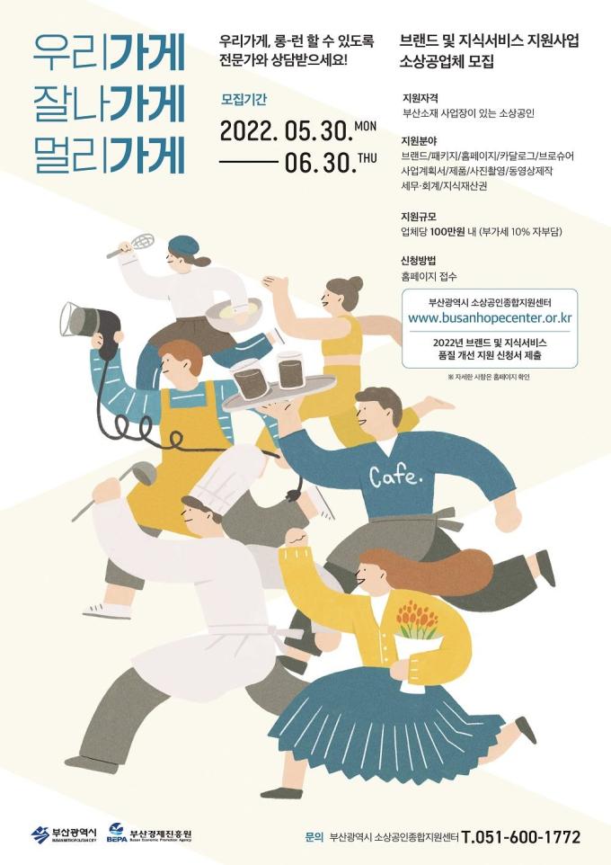 올해는 총 400개 업체를 지원할 예정으로 신청은 6월 30일까지 부산광역시 소상공인종합지원센터에서 선착순으로 진행된다.