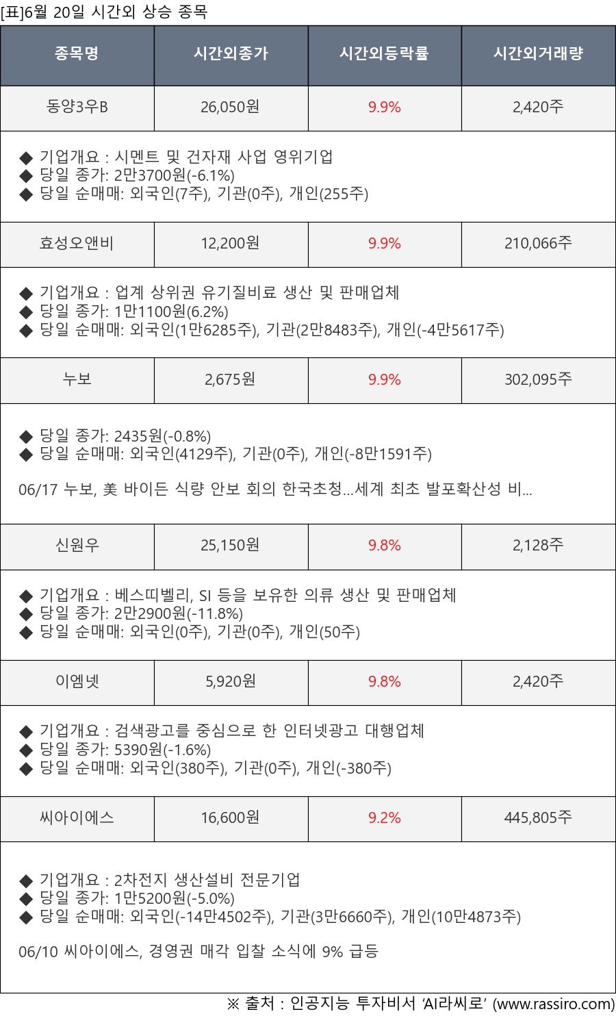 ※ 관련 종목: 동양3우B, 효성오앤비, 누보, 신원우, 이엠넷, 씨아이에스
