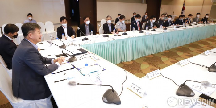 [서울=뉴스핌] 이기일 보건복지부 제2차관(왼쪽 두번째)이 서울 중구 프레지던트호텔에서 열린 보건복지 규제혁신 2차 현장 간담회에 자리하고 있다. [사진=보건복지부] 2022.06.23 photo@newspim.com