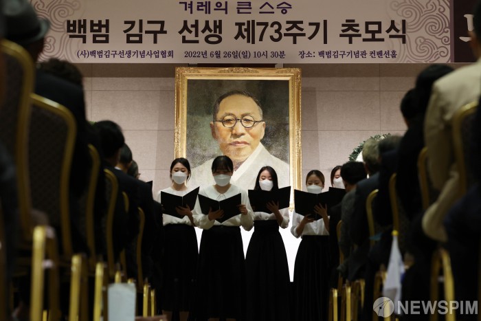 [서울=뉴스핌] 김학선 기자 = 26일 서울 용산구 백범김구기념관에서 '백범 김구 선생 제73주기 추모식'이 열리고 있다. 2022.06.26 yooksa@newspim.com