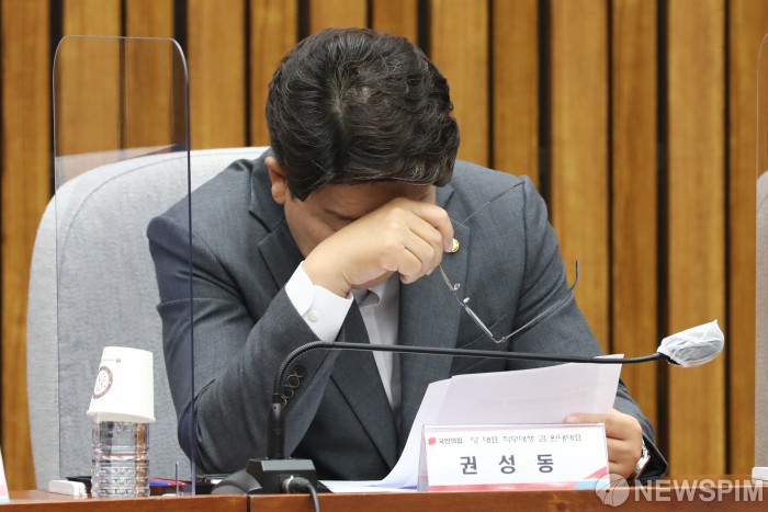 [서울=뉴스핌] 최상수 기자 = 권성동 국민의힘 당대표 직무대행 겸 원내대표가 19일 오후 국회에서 열린 국민의힘 - 제주 예산정책협의회에 참석해 생각에 잠겨 있다. 2022.07.19 kilroy023@newspim.com