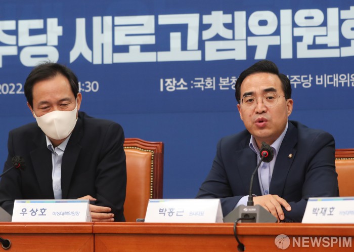 [서울=뉴스핌] 최상수 기자 = 박홍근 더불어민주당 원내대표가 27일 서울 여의도 국회에서 열린 새로고침특별위원회 간담회에서 모두발언을 하고 있다. (공동취재사진) 2022.07.27 photo@newspim.com