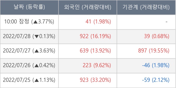 [표] 외국인ㆍ기관 순매매량 (단위 주)
