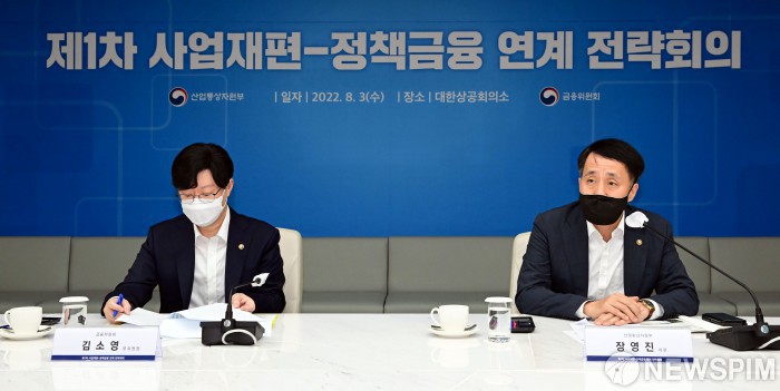 [서울=뉴스핌] 황준선 기자 = 장영진 산업통상자원부 제1차관이 3일 서울 중구 대한상공회의소에서 열린 제1차 사업재편-정책금융 연계 전략회의에서 모두발언 하고 있다. 2022.08.03 hwang@newspim.com